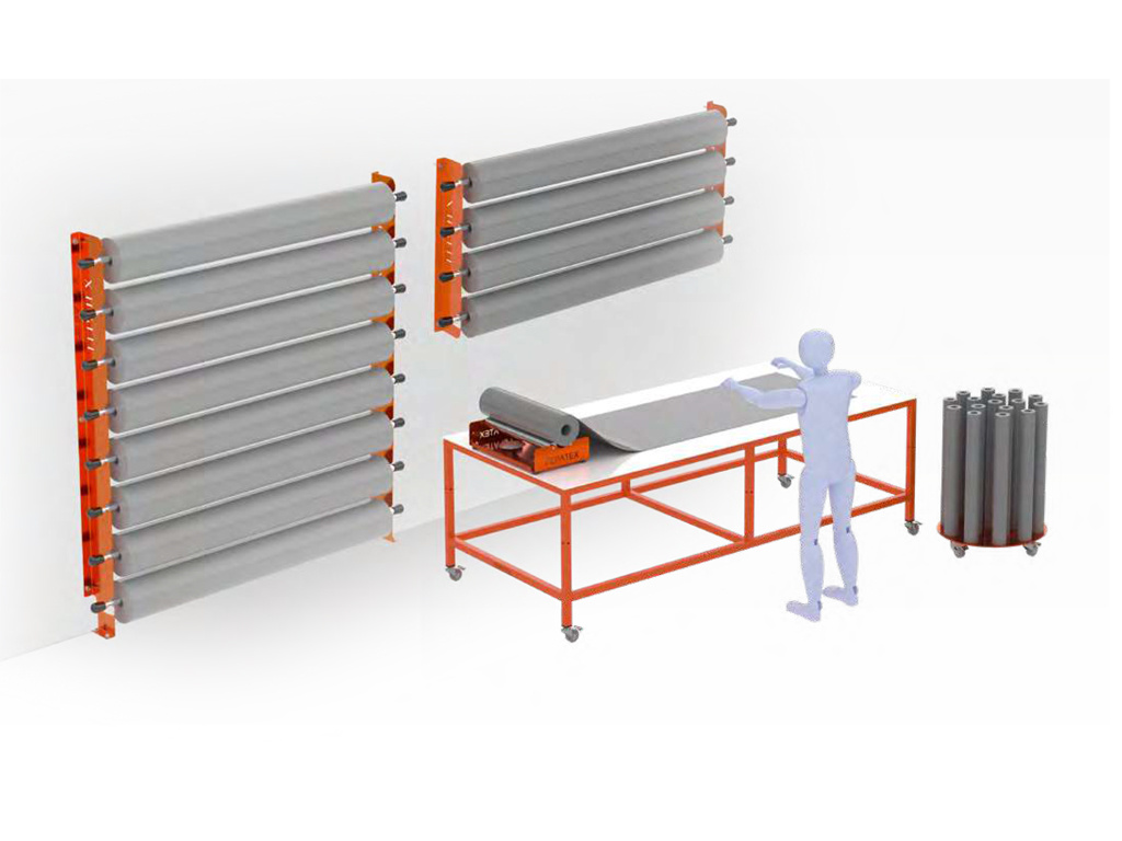 Het wisselen van rollen gaat snel en eenvoudig, ideaal voor omgevingen waar tempo en orde belangrijk zijn. De Wall Rack is verkrijgbaar in 4-rol en 8-rol uitvoeringen en past naadloos in printshops, confectieateliers en elke productieomgeving waar slimme opslag het verschil maakt.