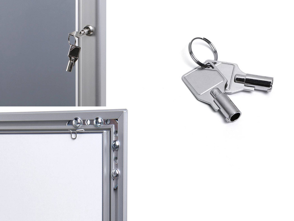 Deze postervitrine indoor is ontworpen voor gebruiksgemak, uitgerust met een doorzichtig polycarbonaat voorpaneel waardoor u de posters snel en eenvoudig kunt veranderen. De posterbevestiging is inclusief om ervoor te zorgen dat content veilig op zijn plaats blijft. De formaten A4, A3, A2 en B1 (500x700mm) zijn voorzien van één slot, terwijl grotere formaten A1, A0 en B1 (700x1000mm) worden geleverd met twee sloten voor extra veiligheid.