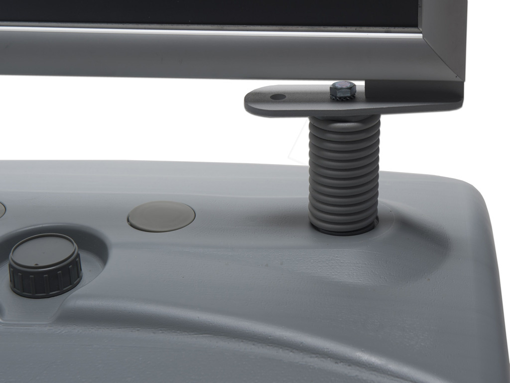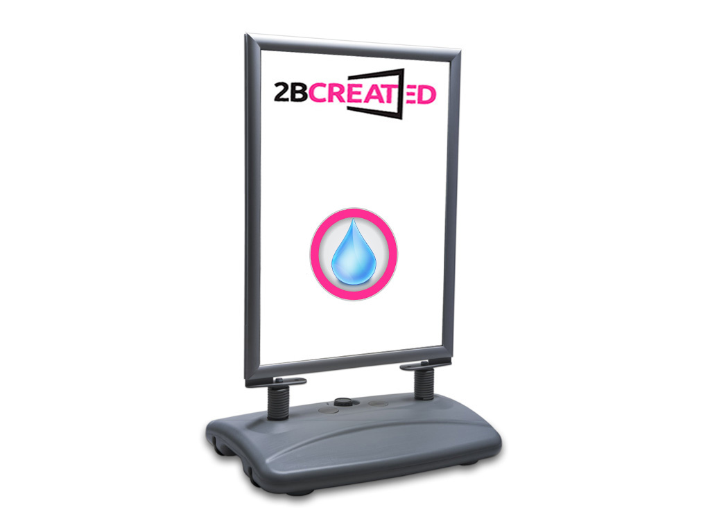 Stoepbord Buiten Grijs is geheel in het grijs uitgevoerd met waterbase. Flexibel in de wind door 2 stevige veren, waterdicht uitgevoerd. Dubbelzijdige poster presentatie voorzien van klikprofielen. Makkelijk verplaatsbaar door 2 wieltjes.